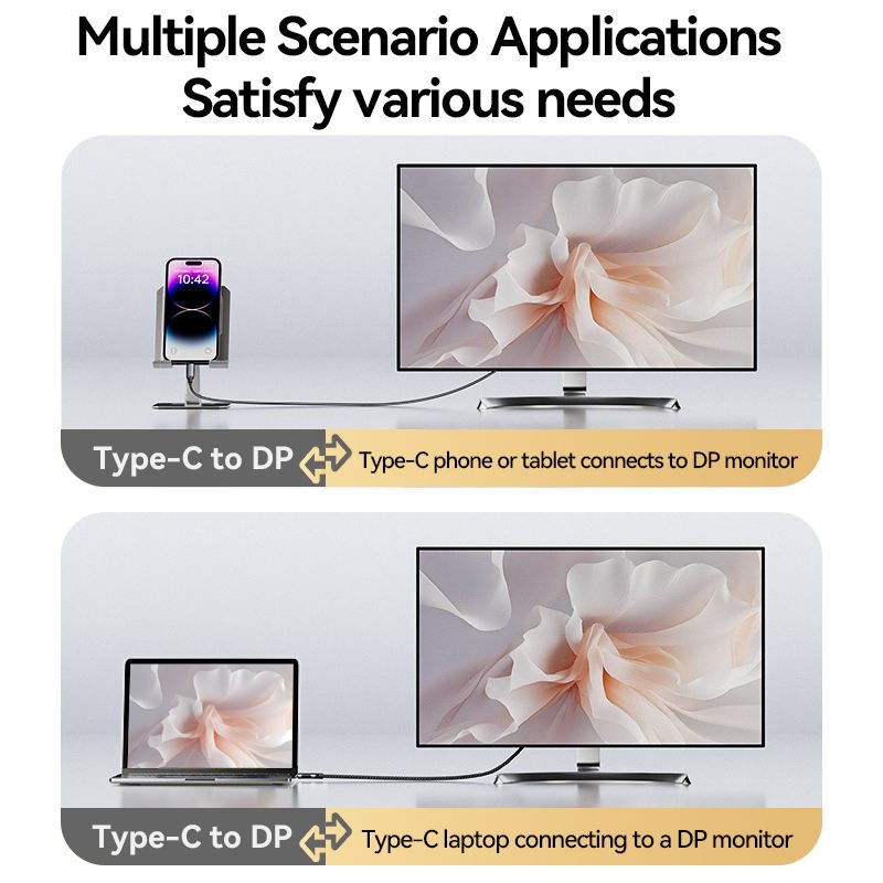 A135 Cáp Type C Sang Displayport 8K Dây Bện Lưới Đầu Bọc Nhôm Mạ Vàng Dài 2M Jasoz T-A397 (Hỗ Trợ 2 Chiều )