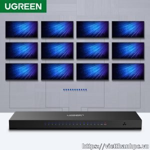 Bộ chia hdmi 1 ra 16 cổng hỗ trợ full HD 1080p chính hãng Ugreen 40218 sử dụng 1 máy tính, đầu ghi hình camera, đầu kĩ thuật số… xuất ra 16 màn hình hoặc máy chiếu có hình ảnh giống nhau. Bộ chia HDMI 16 cổng được sử dụng trong siêu thị, hội trường, ngân hàng, nhà máy, trung tâm điều kiển giao thông, đài truyền hình, trường học….