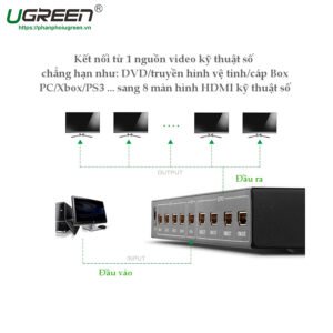 Bộ chia HDMI 1 ra 8 cổng Ugreen 40203 là một thiết bị cho phép người dùng để kết nối bất kỳ nguồn video kỹ thuật số, ví dụ như: DVD, truyền hình vệ tinh, cáp Box, PC, Xbox, PS3 và nhiều hơn nữa với 8 màn hình HDMI kỹ thuật số.