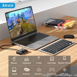 Hub USB 3.0 từ 1 ra 4 cổng JASOZ : Kết nối tối đa 4 thiết bị USB với PC hoặc máy tính xách tay của bạn, chẳng hạn như ổ cứng ngoài, ổ flash USB, chuột, bàn phím, tai nghe USB, loa, thẻ nhớ, bàn phím, chuột và nhiều thiết bị USB khác. Nó giúp bạn tránh xa những rắc rối liên tục kết nối và ngắt kết nối