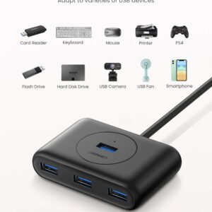 Hub USB 3.0 từ 1 ra 4 cổng Ugreen : Kết nối tối đa 4 thiết bị USB với PC hoặc máy tính xách tay của bạn, chẳng hạn như ổ cứng ngoài, ổ flash USB, chuột, bàn phím, tai nghe USB, loa, thẻ nhớ, bàn phím, chuột và nhiều thiết bị USB khác. Nó giúp bạn tránh xa những rắc rối liên tục kết nối và ngắt kết nối