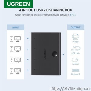 Bộ chia sẻ tín hiệu USB cho 4 máy tính PC, laptop, Macbook chính hãng Ugreen 30346
