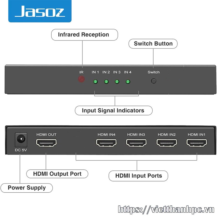 Bộ chia tín hiệu HDMI 1 ra 4 hỗ trợ 4K JASOZ G151 T-G177 – Giải pháp chia sẻ hình ảnh chất lượng cao