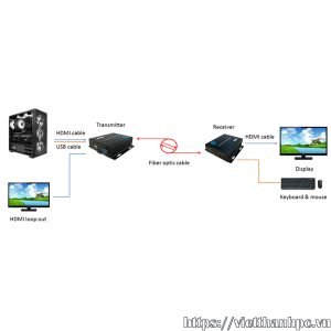 Bộ chuyển đổi hdmi qua cáp quang có cổng usb là thiết bị truyền tải tín hiệu HDMI cho màn hình quan sát ở khoảng cách xa (có thể lên tới 20km) qua cáp quang và hỗ trợ 2 cổng USB để điều khiển chuột và bàn phím