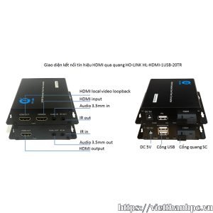 Thông tin kỹ thuật Bộ chuyển đổi HDMI qua cáp quang 1FO có kèm 2 cổng USB, Model: HL-HDMI-1USB-20T/R Chính hãng HO-LINK