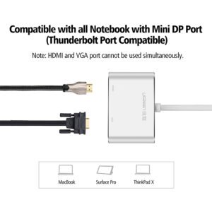 – Cáp chuyển đổi mini Displayport to HDMI và VGA Ugreen 20421 dùng cho Dell, Surface pro, HP, MacBook, MacBook Pro, hay MacBook Air với một cáp mini DisplayPort sang HDMI hoặc VGA xuất ra tivi hay máy chiếu rất đẹp và sắc nét.