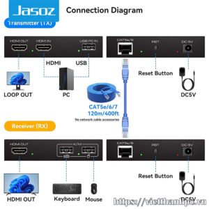 Bộ Kéo Dài Tín Hiệu HDMI + USB Qua Cáp Mạng Jasoz T-G182 – Giải Pháp Kết Nối Hoàn Hảo, Ổn Định, Dài 50M