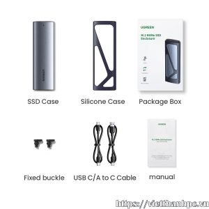 Box M.2 sata USB 3.2 GEN 2 Type-C UGREEN 90264 thiết kế vừa vặn mọi kích thước của ổ cứng 2230, 2242, 2260, 2280 lên đến 2TB.