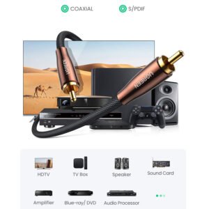 - Cáp âm thanh RCA Coaxial phù hợp với các thiết bị RCA, S/PDIF tiêu chuẩn, cổng đồng trục, loa siêu trầm, loa Hi-Fi, bộ khuyếch đại, bộ thu AV, bộ điều khiển DJ, Sound bar, hệ thống rạp hát tại nhà.