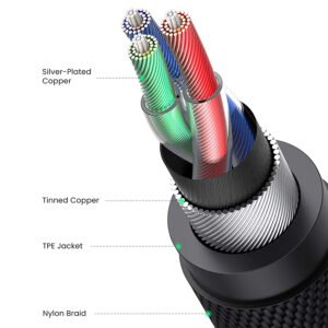 - Dây âm thanh được tích hợp bảo vệ truyền dẫn nhiều lớp che chắn để giảm sự thất thoát âm thanh trong quá trình truyền tải. Cáp Aux này cung cấp cho bạn ít tiếng ồn hơn, ít suy hao hơn và trải nghiệm âm thanh đặc biệt, tinh khiết hơn.
