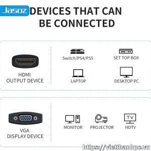 Cáp HDMI to VGA JASOZ G102giúp kết nối máy tính xách tay, Macbook, Chromebook, Rasberry Pi với giao diện HDMI để chiếu, hiển thị, màn hình LCD, TV & màn hình với giao diện VGA để xem màn hình lớn với một cáp VGA (được bán riêng)