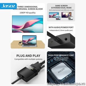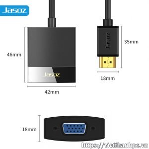 Cáp chuyển HDMI sang VGA JASOZ G102 Với chipset tích hợp, chuyển đổi tín hiệu HDMI kỹ thuật số sang tín hiệu VGA.Cáp chuyển đổi này chỉ chuyển tín hiệu từ các thiết bị nguồn HDMI để hiển thị VGA hoặc màn hình. Cấu tạo vỏ nhôm cao cấp, với tản nhiệt tốt hơn và chống nhiễu.