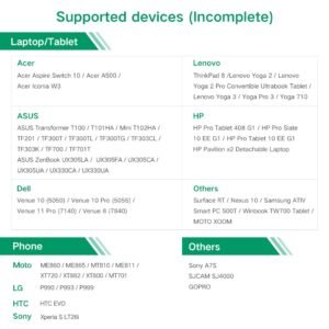 Ugreen 40268 tương thích với các thiết bị như Acer Aspire Switch 10, Asus Transformer Book 10.1 inch, Lenovo Yoga 2 Pro Ultrabook Tablet, Lenovo Yoga 3, Nexus 10, Samsung ATIV Smart PC 500T, Samsung Series 9 Ultrabook, Winbook TW700 Máy tính bảng hỗ trợ độ phân giải full HD sắc nét