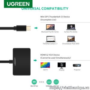 Thông số kỹ thuật : Cáp Mini Displayport to VGA + HDMI Ugreen 10439