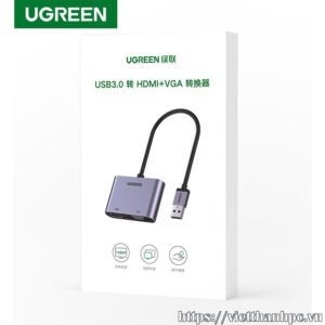 Cáp chuyển đổi USB 3.0 sang HDMI + VGA 1080P/60Hz Ugreen 20518 cao cấp
