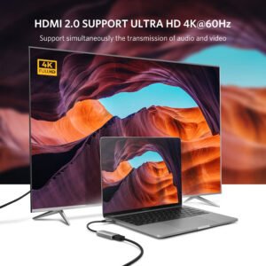 Cáp chuyển USB Type C to HDMI hỗ trợ 4K@60Hz kết nối từ Macbook, điện thoại di động hiển thị ra màn hình TV, máy chiếu hỗ trợ cổng HDMI.