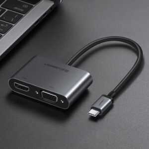 - Cáp chuyển USB Type c to HDMI + VGA Ugreen 50738 cho phép bạn kết nối cổng USB Type C như máy tính, laptop ra màn hình Tivi, máy chiếu thông qua cổng HDMI hoặc VGA.