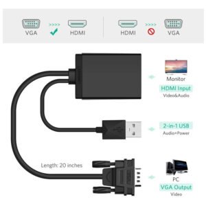 - Cáp chuyển VGA to HDMI hỗ trợ độ phân giải lên tới Full HD 1080P, tích hợp cổng USB cấp nguồn, âm thanh.