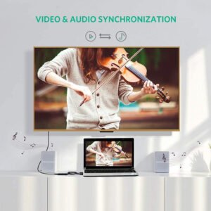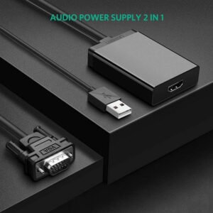 - Cáp chuyển VGA to HDMI tích hợp audio Ugreen 40213 kết nối từ các thiết bị hỗ trợ cổng VGA như: máy tính, Tv box, đầu DVD…hiển thị lên màn hình TV hoặc máy chiếu hỗ trợ cổng HDMI giúp bạn trình chiếu hình ảnh video các buổi họp, showroom…