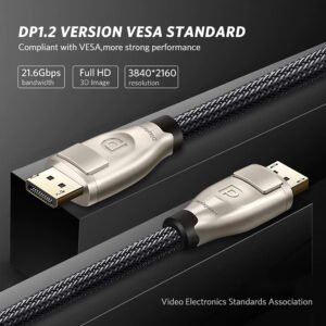 - Dây Displayport chất liệu dây được bện lưới chắc chắn ngăn ngừa nứt và ảnh hưởng tới dây khi được sử dụng trong công trường, đảm bảo bộ bền của sản phẩm.