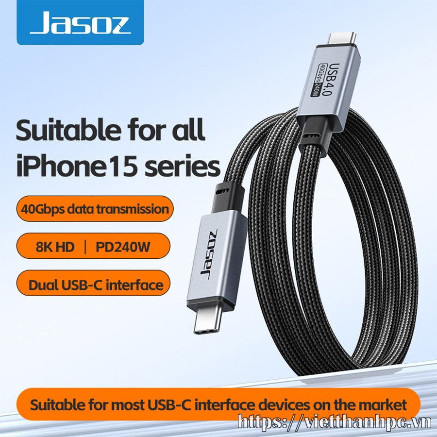 Cáp dữ liệu USB4 hai đầu USB-C dài 1,2M hỗ trợ phân giải 8K Jasoz D119 T-D202