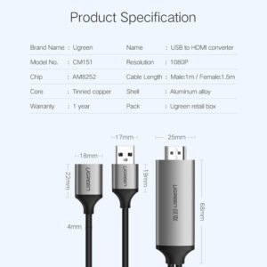 Là sản phẩm cao cấp của Ugreen dùng để trình chiếu hình ảnh từ điện thoại, máy tính bảng lên tivi