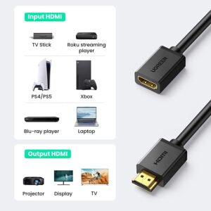 - Cáp HDMI nối dài 3m Ugreen 10145 chính hãng kéo dài cáp HDMI ngắn để kết nối với thiết bị HDMI tiêu chuẩn, tương thích với HDTV, TV Sticks, Blu-Ray DVD Player, Game Console, TV Box, PS4, PS5…