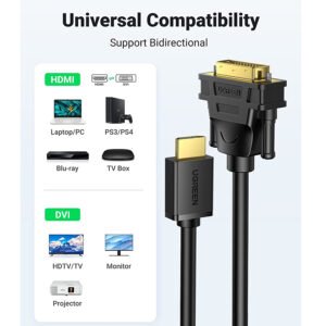 - Đặc biệt cáp chuyển đổi Ugreen 30116 hỗ trợ kết nối 2 chiều, có thể kết nối từ HDMI ra DVI và ngược lại DVI ra HDMI.
