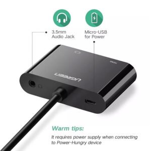 - Cáp chuyển đổi HDMI Ugreen 40744 được trang bị thêm một cổng Micro USB cấp nguồn phụ giúp thiết bị hoạt động ổn định trong nhiều trường hợp cần sử dụng dây nối dài ở cự ly xa. Ngoài ra thiết bị này còn tích hợp cổng Audio 3.5mm để xuất âm thanh ra Amply hoặc loa cho chất lượng âm thanh tuyệt hảo.