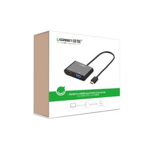- Cáp chuyển HDMI sang VGA, HDMI cao cấp Ugreen 40744 là cáp kết nối chia sẻ hình ảnh từ máy tính, laptop…của bạn với máy chiếu, màn hình, HDTV…thông qua cổng kết nối VGA và HDMI. Với khả năng chuyển đổi từ cổng HDMI sang VGA và thêm một cổng HDMI âm, Ugreen 40744 mang lại sự tiện dụng tối đa cho người sử dụng.