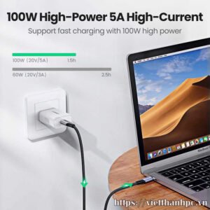 Cáp sạc nhanh Thunderbolt Ugreen US355 là một loại cáp chất lượng cao được thiết kế để truyền dữ liệu, sạc nhanh 100W và hỗ trợ truyền hình ảnh. Dưới đây là các đặc điểm chính của sản phẩm.