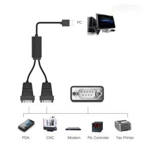 - Cáp USB to 2 Com được sử dụng rộng rãi trong các ngành công nghiệp, máy cắt, máy in ấn…