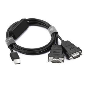 Cáp USB to 2 Com (RS232) Ugreen 30769 kết nối từ laptop, máy tính để bàn sang cùng lúc 2 thiết bị hỗ trợ cổng Com (RS232) như: máy công nghiệp, máy đếm tiền, ATM, máy quét…
