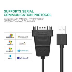 - Cáp USB to 4 Com (RS232) Ugreen 30770 dễ dàng chuyển đổi thiết bị có chuẩn cổng USB 2.0 sang cổng 2 cổng Com (RS232) như máy CNC, cảm biến công nghiệp, modem nối tiếp, máy tính tiền, máy ảnh số, máy quét mã vạch…
