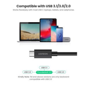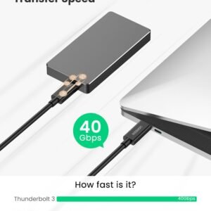 Cáp USB Type C (Thunderbolt 3) dài 0,5m Ugreen 80324 hỗ trợ truyền dữ liệu lên đến 40Gbps, nhanh hơn 4 lần so với USB 3.1 Gen 2, truyền tải nhạc, phim chỉ trong vài giây. Tương thích với USB 3.1 Gen 2 – 10Gbps, USB 3.1 Gen 1 / USB 3.0 – 5Gbps tốc độ truyền dữ liệu sẽ phụ thuộc vào cổng bạn đang sử dụng.