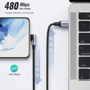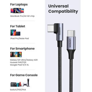 Tính năng cáp USB Type C bẻ góc 90 độ dài 1,5m Ugreen 50124 bện nylon