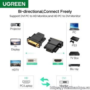 Đầu chuyển đổi DVI 24+1 to HDMI âm chính hãng Ugreen 20124