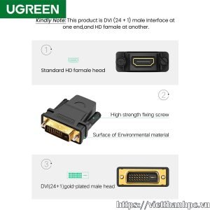 Thông số kĩ thuật Đầu chuyển đổi DVI 24+1 to HDMI âm Ugreen 20124
