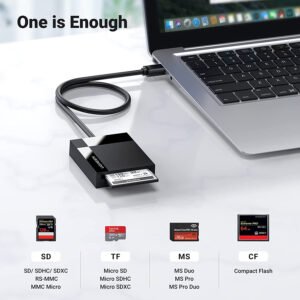 - Đầu đọc thẻ nhớ SD/TF/CF/MS chuẩn USB 3.0 dài 1m Ugreen 30231 sử dụng đọc thẻ SD/TF/CF/MS với máy tính để bàn, laptop, điện thoại di động (cần hỗ trợ chức năng OTG để sử dụng) và máy tính bảng hỗ trợ chuẩn USB 3.0 giúp bạn truyền tải phim ảnh, video chỉ trong thời gian ngắn.