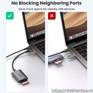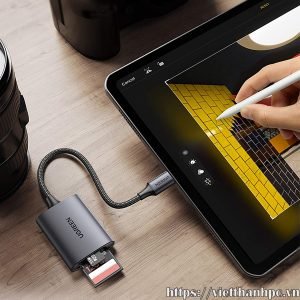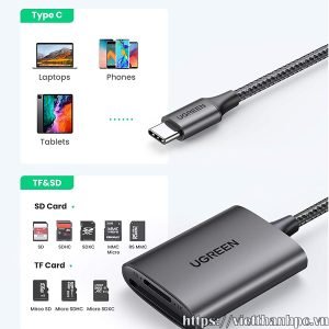 Đầu đọc thẻ Ugreen 80888 hỗ trợ đọc thẻ SD/TF cho máy tính, điện thoại di động có cổng USB Type C kết nối truyền tải dữ liệu hình ảnh, video