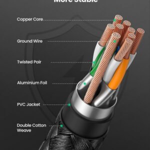 Cáp mạng CAT8 Ugreen được bảo vệ bằng các cặp xoắn lá nhôm riêng lẻ (S/FTP), giúp giảm nhiễu tối đa làm cho tốc độ mạng nhanh và ổn định hơn so với CAT6, CAT7.
