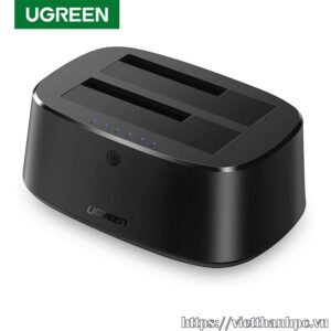 Dock đựng ổ cứng kép Sata 2.5/3.5inch chuẩn USB 3.0 Ugreen 50857 chính hãng giúp bạn sao chép dữ liệu đồng thời giữa 2 ổ cứng với máy tính hoặc qua lại một cách nhanh chóng.