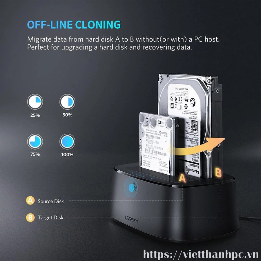 Tính năng chính dock đựng ổ cứng kép Sata 2.5/3.5inch chuẩn USB 3.0 Ugreen 50857