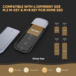– Không cần vít hoặc tuốc nơ vít. Chỉ cần trượt vỏ kim loại phía sau để mở caddy, sau đó cắm SSD M.2 của bạn vào đầu nối B-Key SATA NGFF và sử dụng dây buộc đi kèm để cố định nó vào vị trí, sau đó đóng nắp.