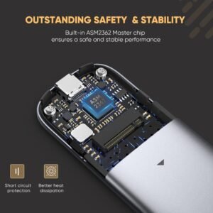 – Hộp đựng ổ cứng SSD Ugreen 60354 chất liệu vỏ được làm bằng hợp kim nhôm cao cấp giúp tản nhiệt tốt hơn, không cần quạt làm mát cho các ổ đĩa trạng thái rắn M.2 NGFF hoạt động tốc độ cao của bạn, có kích thước nhẹ và mỏng, đèn LED báo hiệu trạng thái hoạt động.