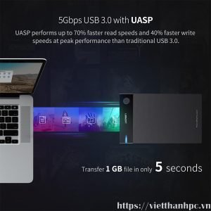 - Tốc độ truyền tải dữ liệu cao nhất lên đến 5Gbps khi kết nối cổng USB 3.0