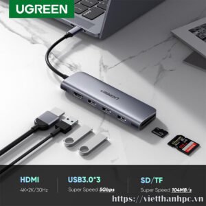 Thông số kỹ thuật hub chuyển USB Type C to HDMI, USB 3.0, đọc thẻ SD/TF Ugreen 70410