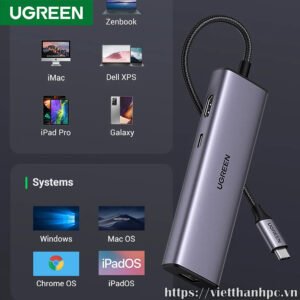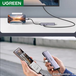 – Bộ chuyển Type C sang 2 * USB 3.0 + HDMI + RJ45 + Sd/TF + PD 100W Ugreen (90568) : mở rộng 7 cổng như HDMI, Ethernet, 2 cổng USB 3.0, các khe cắm USB C, SD và Micro SD sạc qua PD cho máy tính xách tay hoặc máy tính bảng của bạn, mở rộng không gian làm việc và cải thiện năng suất của bạn