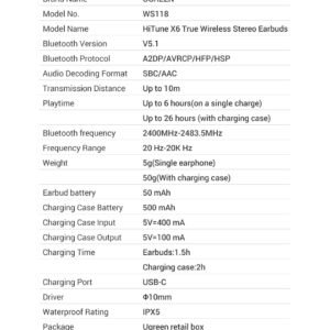 Thông số kỹ thuật của Tai nghe không dây Bluetooth Hitune X6