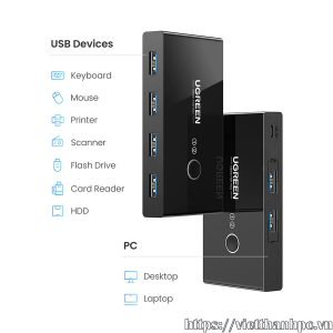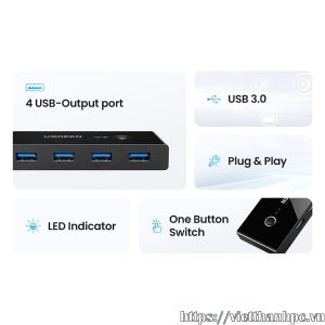 Bộ Chuyển Mạch USB 3.0 4 Cổng Ugreen 30768 là sự lựa chọn tuyệt vời để chia sẻ 4 thiết bị USB giữa hai máy tính cá nhân. Một giải pháp lý tưởng để chia sẻ một máy in hoặc máy quét trong môi trường văn phòng hoặc tại nhà của bạn.
